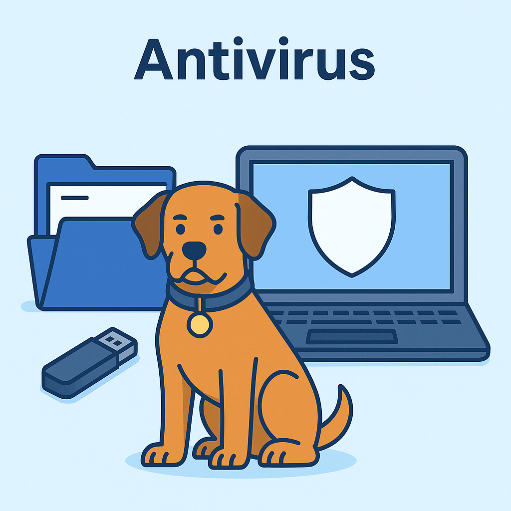 Un antivirus, c’est comme un chien de garde numérique, c’est ton premier rempart. Il analyse ce qui entre dans votre PC et bloque les logiciels malveillants. Il surveille les fichiers, les téléchargements, les clés USB...